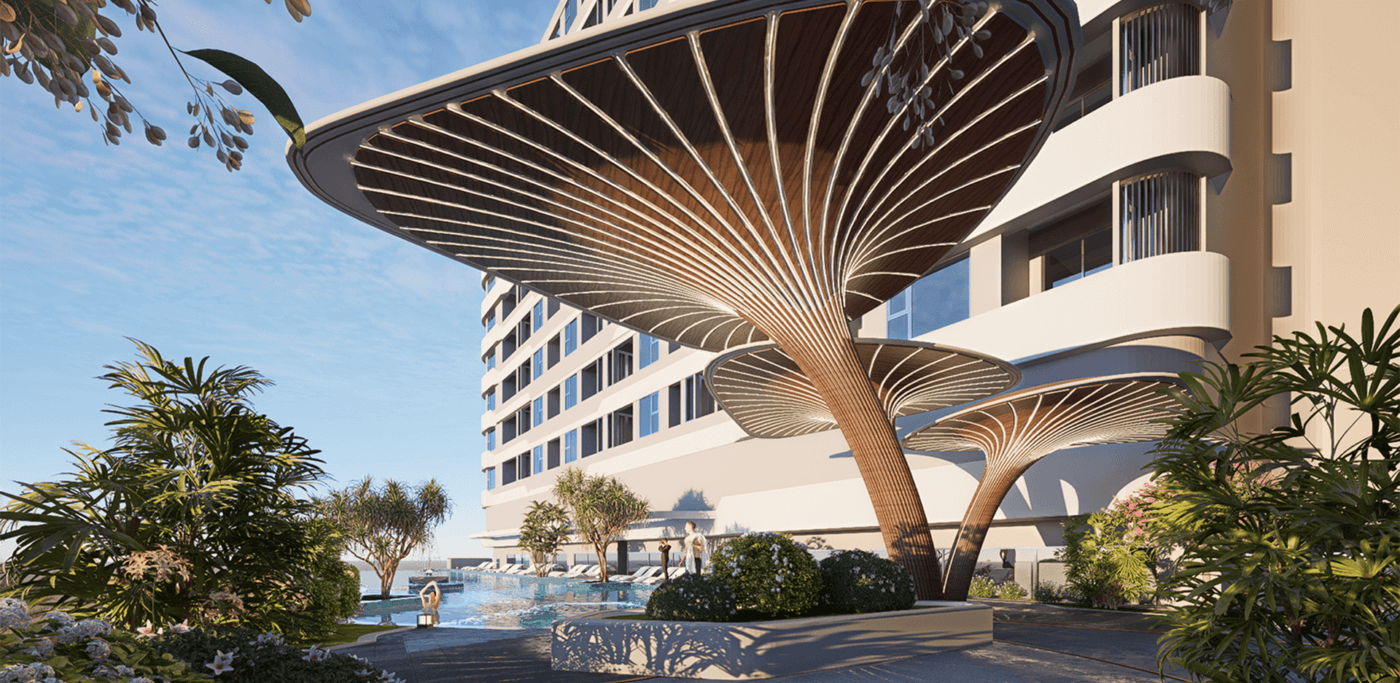 Tòa phức hợp cao 46 tầng là một trong những tòa nhà cao nhất Quy Nhơn khi hoàn thành với lối kiến trúc được lấy cảm hứng từ những cơn sóng biển mềm mại và uyển chuyển.